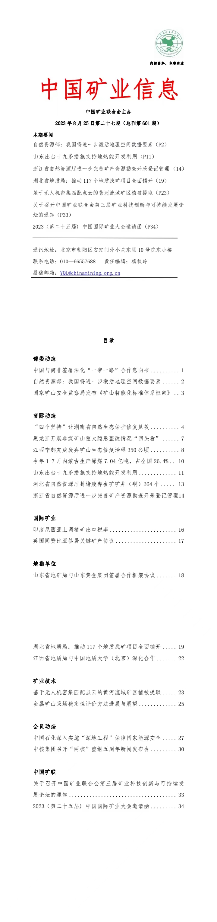 米兰体育官方网页:2023年8月21日—8月25日《中國礦業信息》第二十七期