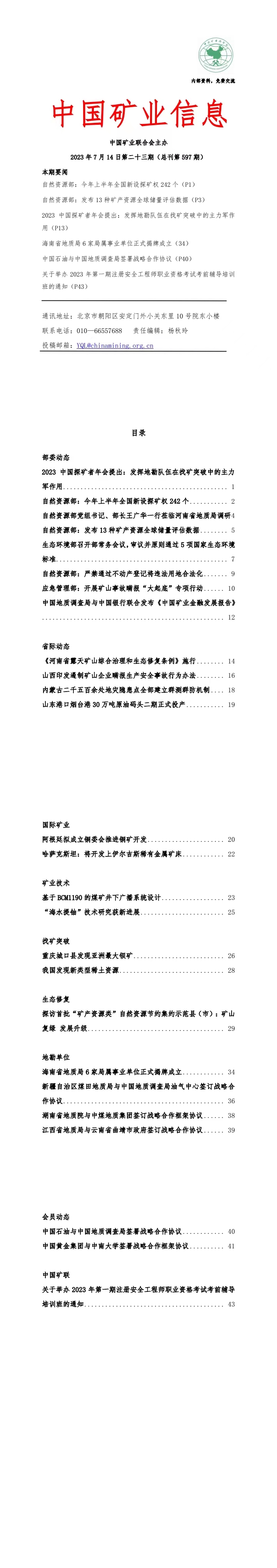 米兰体育官方网页:2023年7月10日—7月14日《中國礦業信息》第二十三期