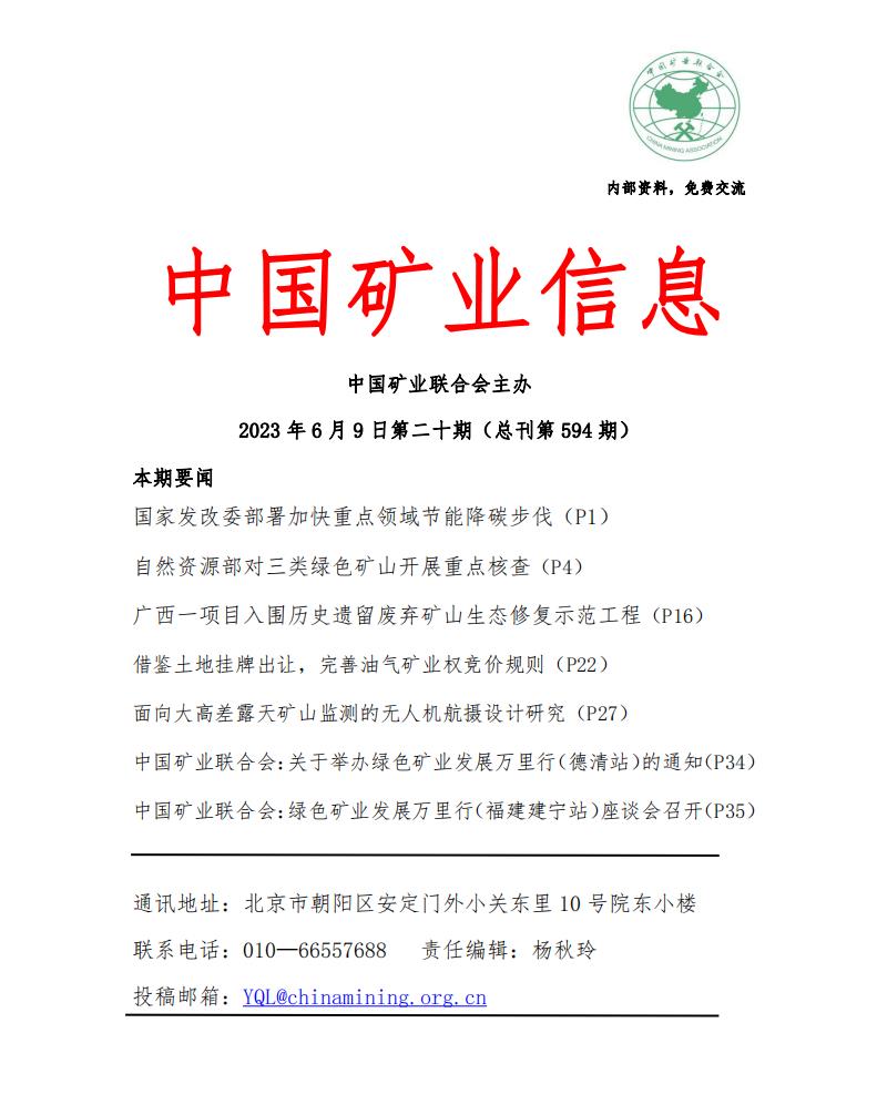 米兰体育官方网页:2023年6月5日—6月9日《中國礦業信息》第二十期