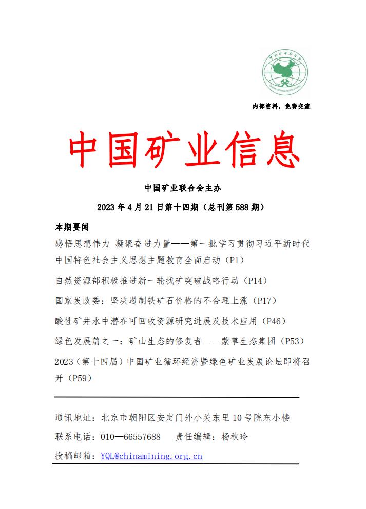 米兰体育官方网页:2023年4月17日—4月21日《中國礦業信息》第十四期