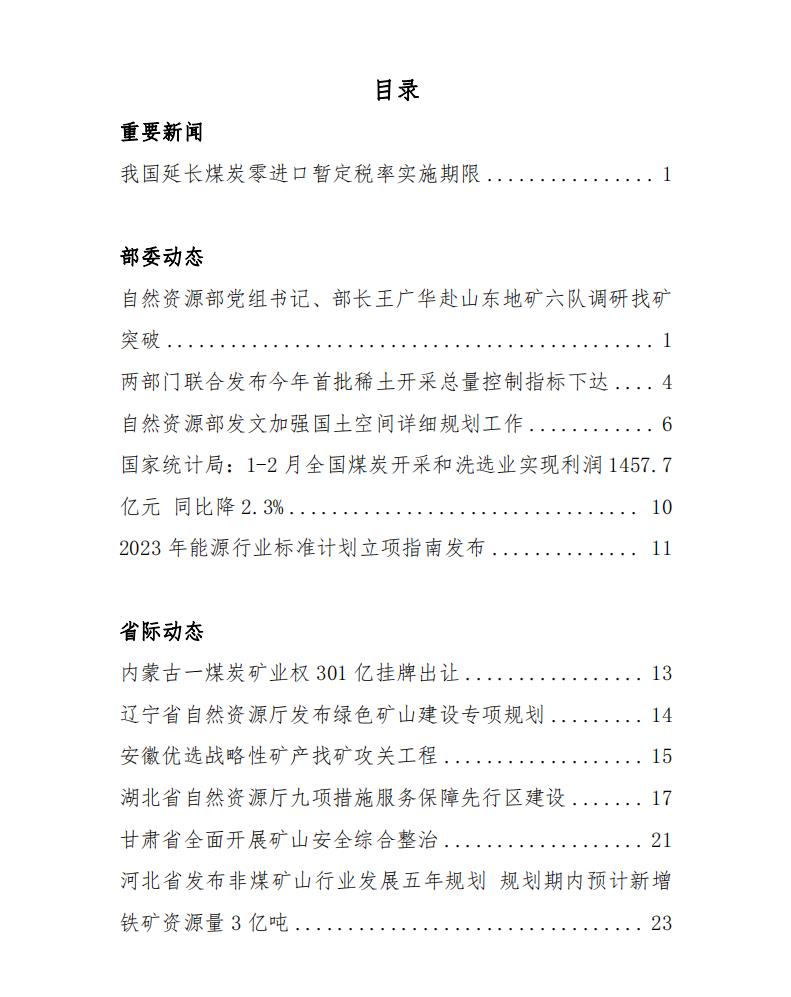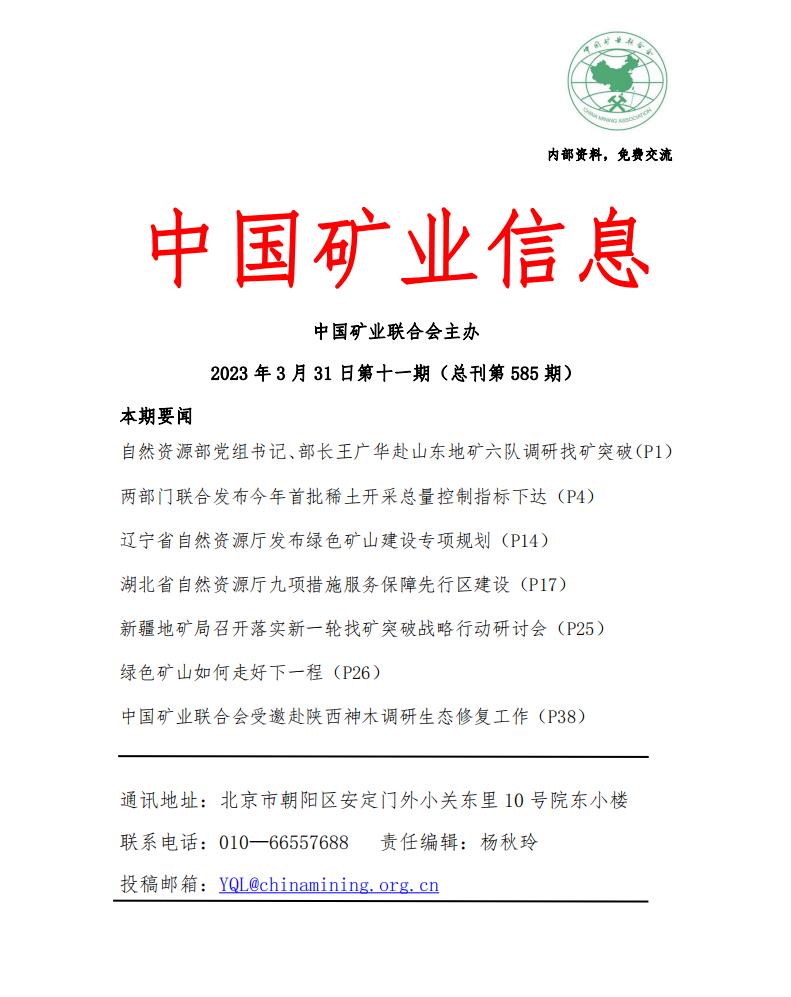 米兰体育官方网页:《中國礦業信息》2023年3月27日—3月31日第十一期