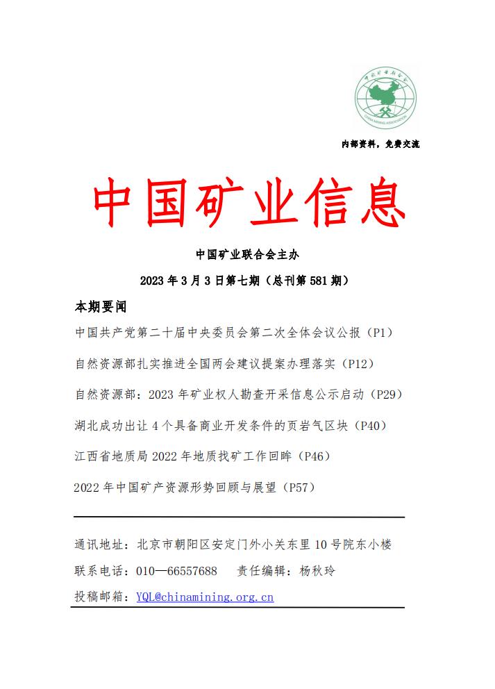 米兰体育官方网页:《中國礦業信息》2023年2月27日—3月3日第七期