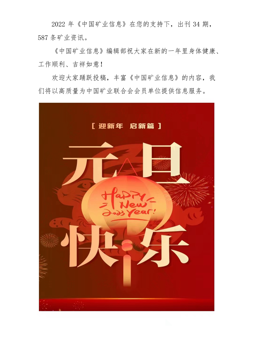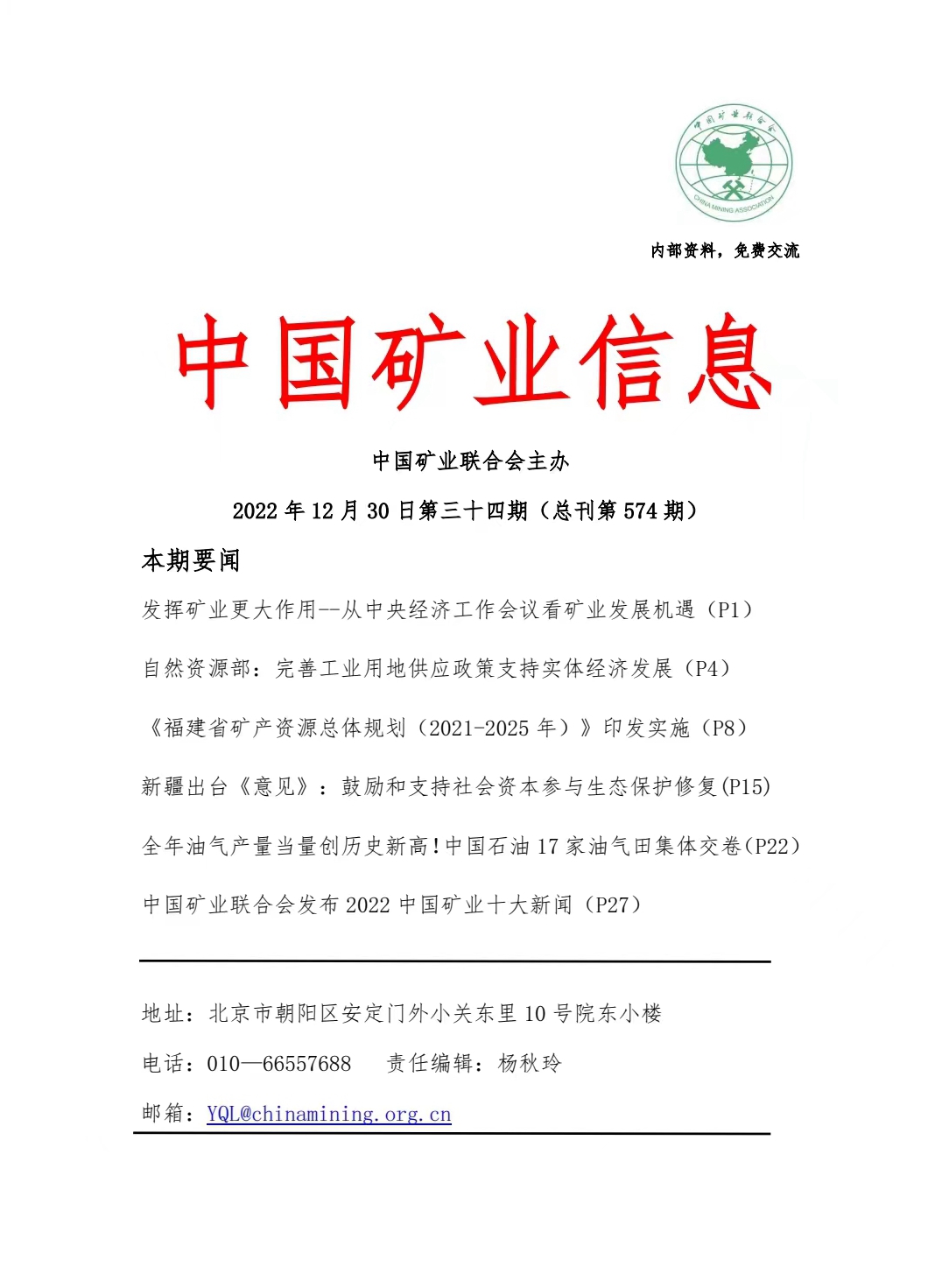米兰体育官方网页:《中國礦業信息》(20221226—20221230)第三十四期