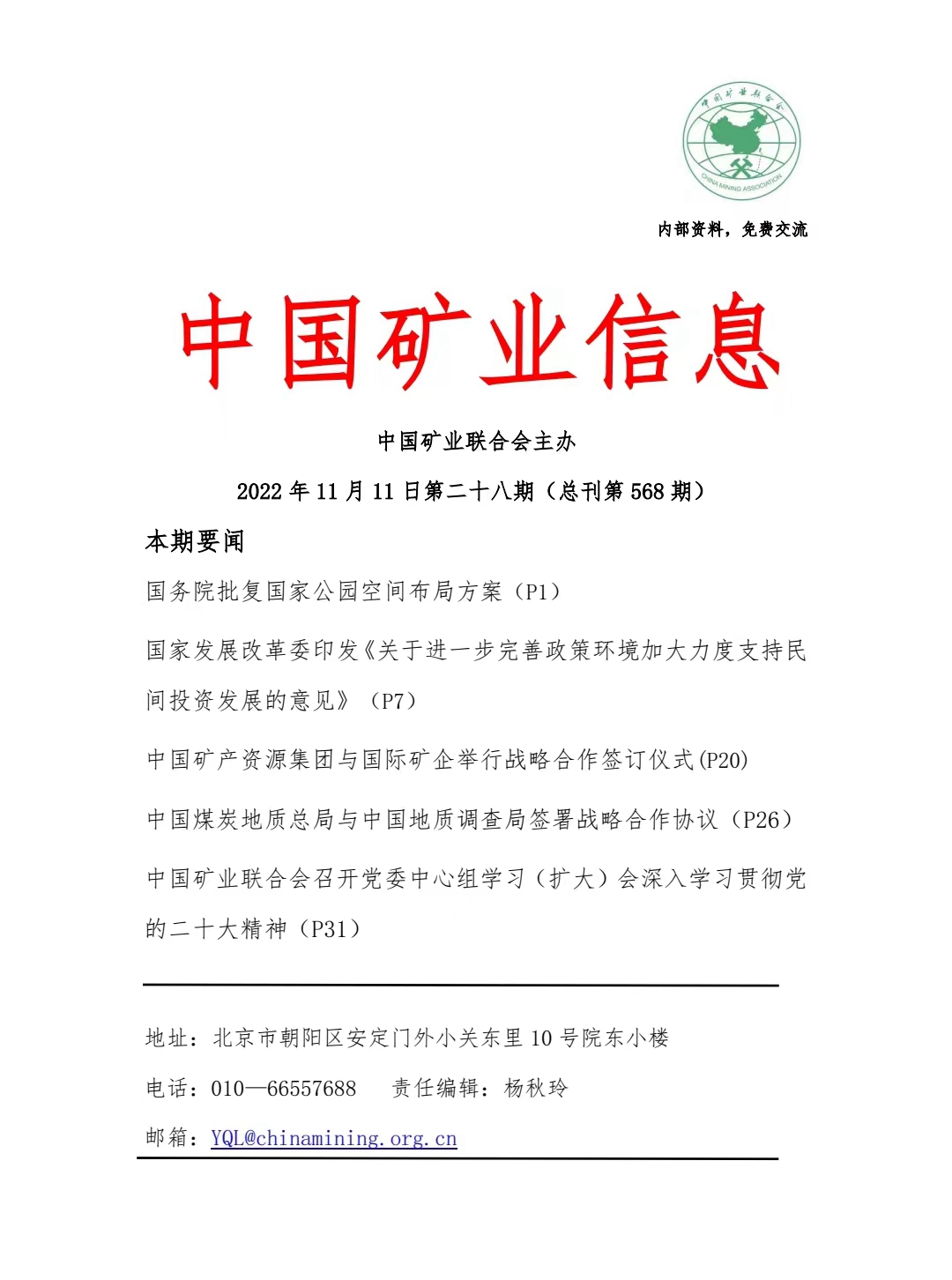 米兰体育官方网页:《中國礦業信息》(20221107—20221111)第二十八期
