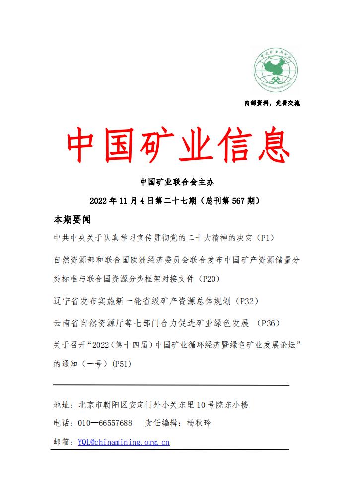 米兰体育官方网页:《中國礦業信息》(20221031—20221104)第二十七期