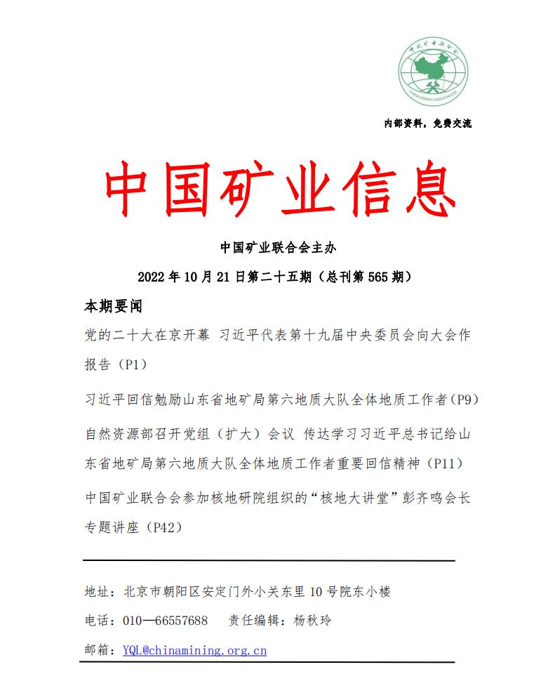 米兰体育官方网页:《中國礦業信息》(20221017—20221021)第二十五期