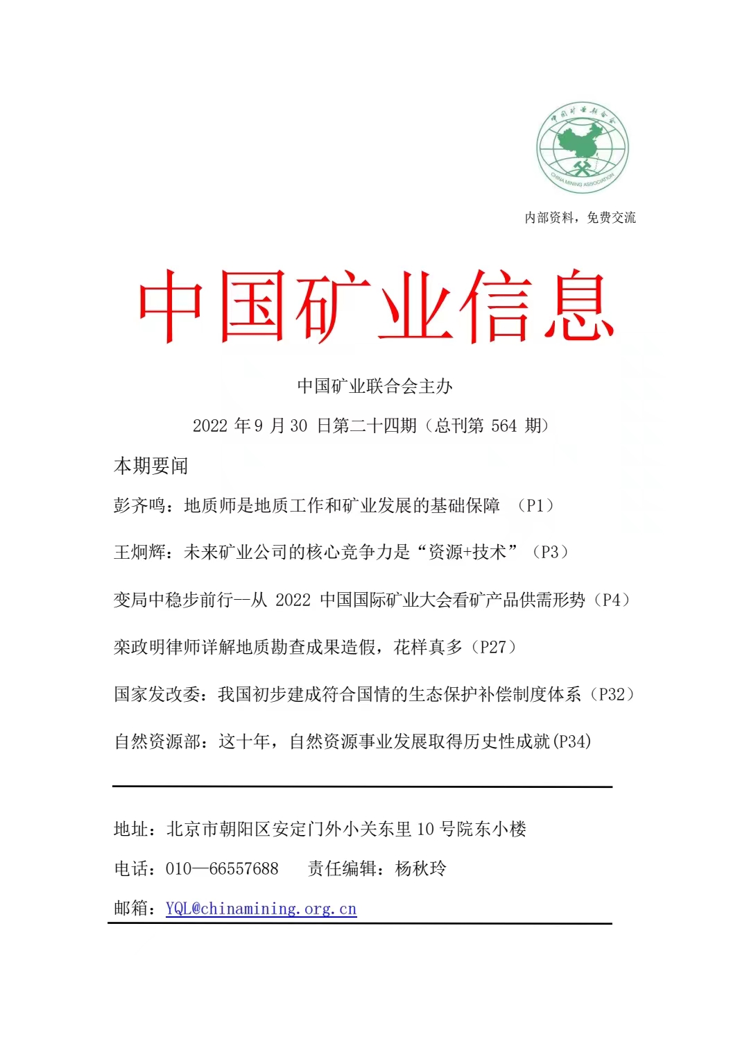 米兰体育官方网页:《中國礦業信息》(20220926—20220930)第二十四期(2022中國國際礦業大會專刊)