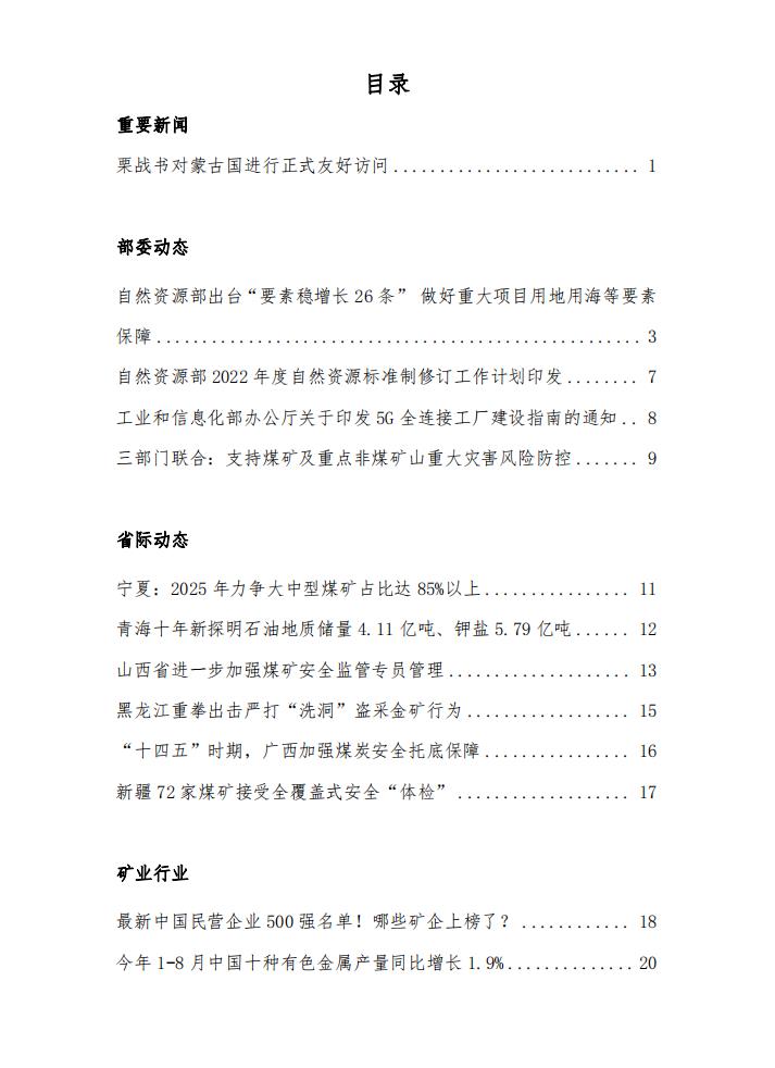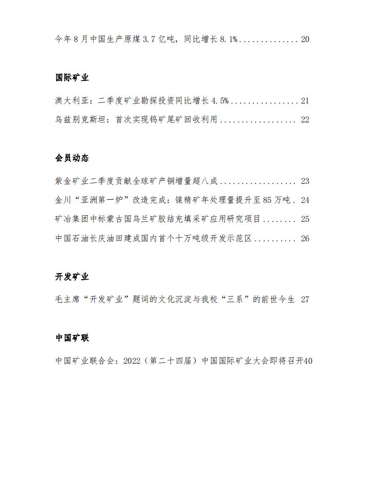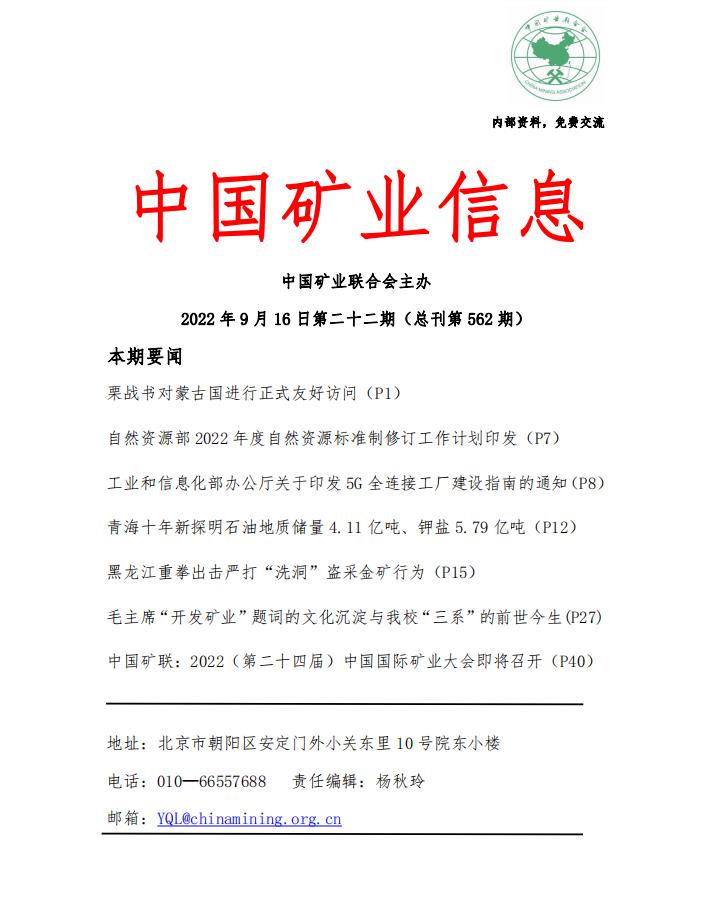 米兰体育官方网页:《中國礦業信息》(20220912—20220916)第二十二期