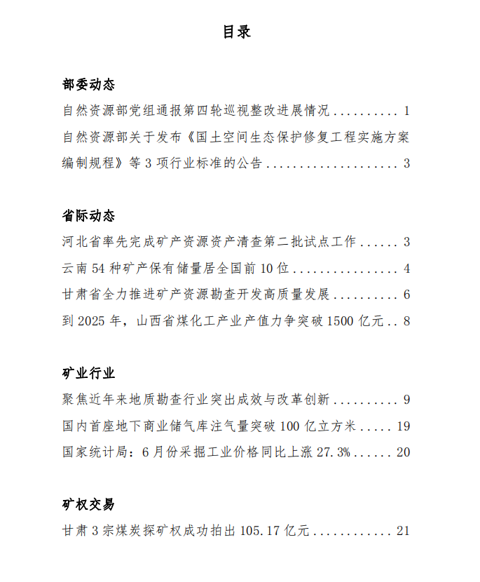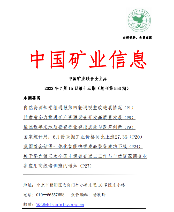 米兰体育官方网页:《中國礦業信息》(202207011—20220715)第十三期
