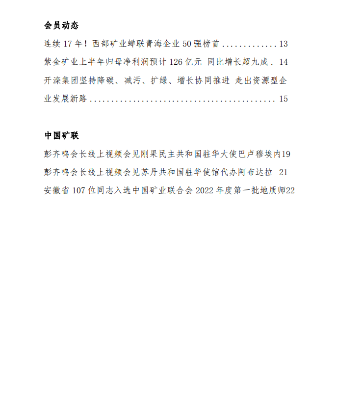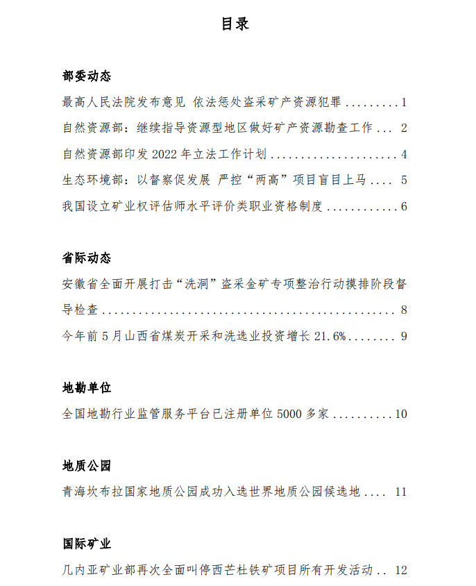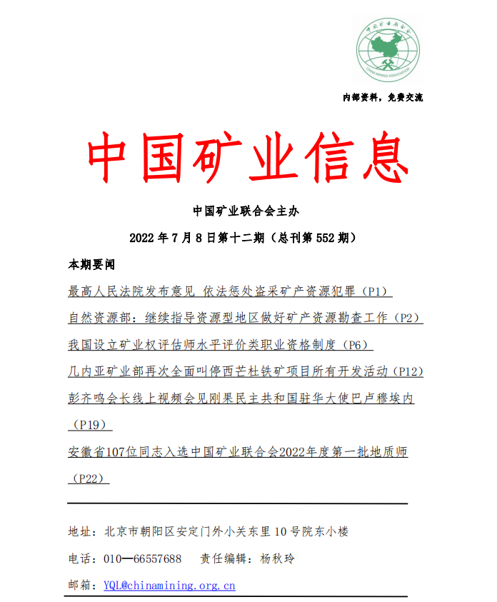 米兰体育官方网页:《中國礦業信息》(20220704—20220708)第十二期