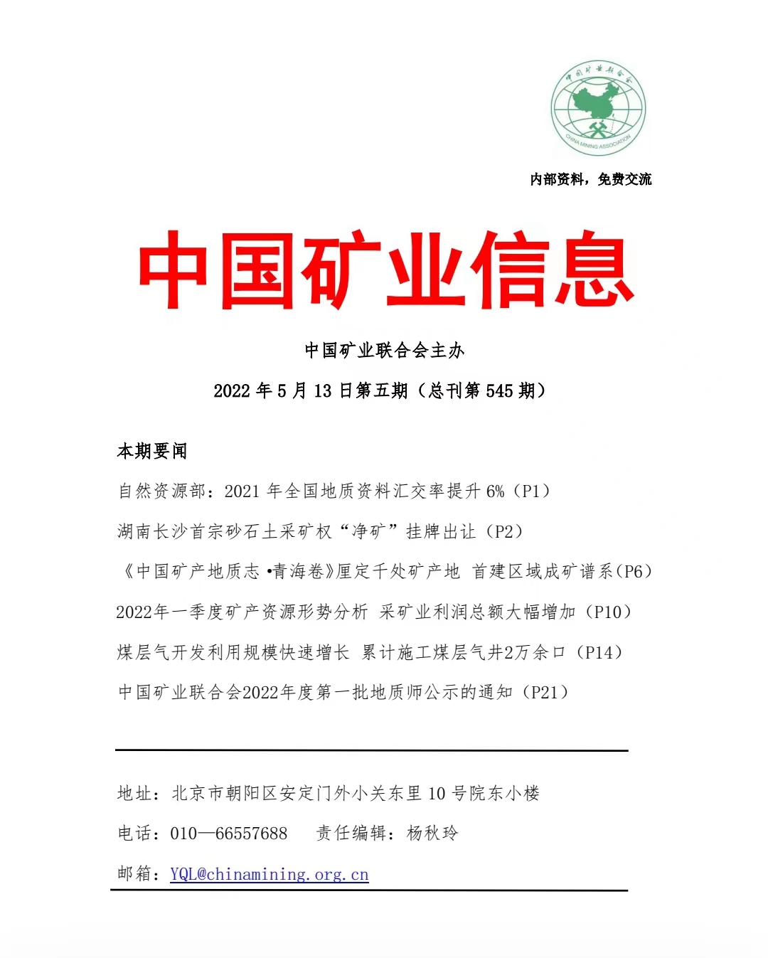 米兰体育官方网页:《中國礦業信息》2022.5.13第五期