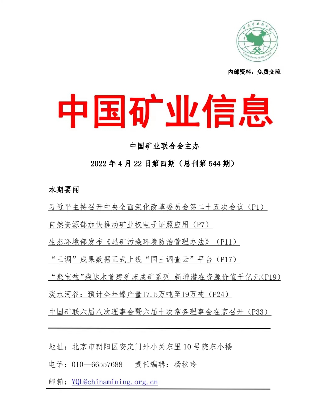 米兰体育官方网页:《中國礦業信息》2022.4.22第四期