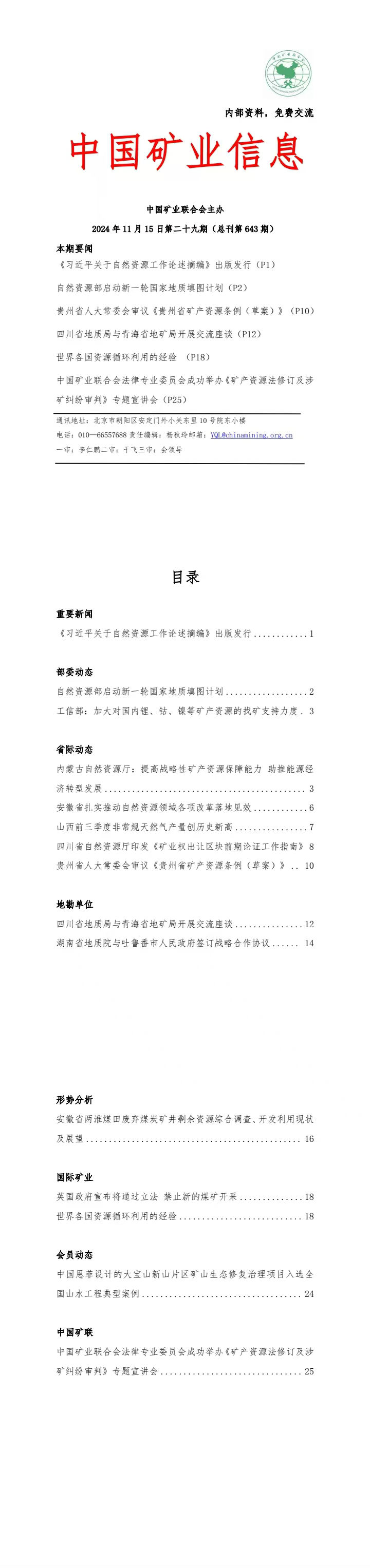 米兰体育官方网页:2024年11月11日—11月15日《中國礦業信息》第二十九期