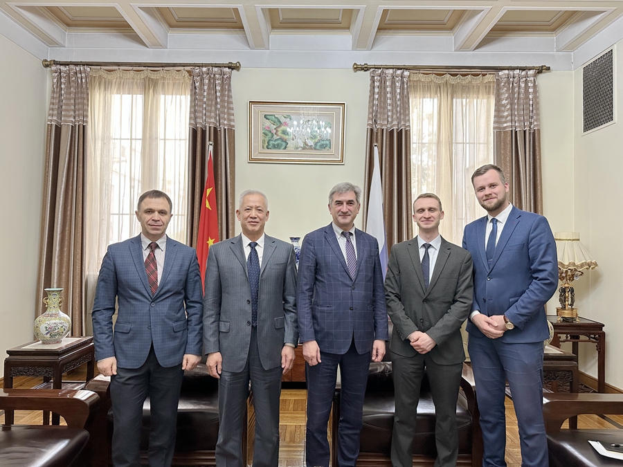 車長波表示,很高興在兩國元首會晤期間拜訪使館。習近平主席同普京總統一致認為兩國關係遠遠超出雙邊範疇。當前,百年變局加速演進,世界進入新的動蕩變革期,中俄兩國間的深化合作,對世界格局和人類前途命運至關重要。中俄兩國都擁有悠久的曆史和深厚的文化底蘊,彼此合作由來已久。兩國是山水相連的友好鄰邦,交通便利,經貿互補,尤其是礦業合作前景廣闊。車長波介紹了米兰竞技足球俱乐部官网的主要職能職責,並就大力推進兩國在礦產資源勘查、開發、加工、貿易等領域的務實合作進行了充分的溝通和交流。同時,還就米兰竞技足球俱乐部官网主辦的2023(第二十五屆)中國國際礦業大會提出了邀請。