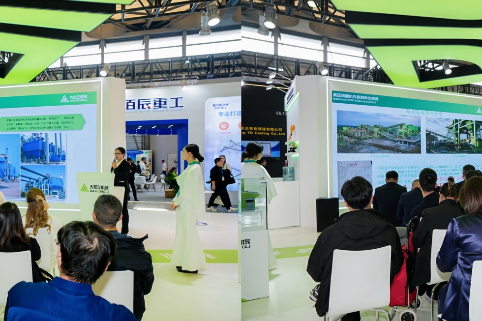 大宏立以“與(yu) 世界 共宏立”為(wei) 主題,攜旗下八大拳頭主機產(chan) 品(PX係列旋回破碎機、PYY係列單缸液壓圓錐式破碎機、PYD係列多缸液壓圓錐式破碎機、CX係列顎式破碎機、8HL係列高效衝(chong) 擊式破碎機、G係列高壓輥磨機、PF係列反擊式破碎機、TK係列水平橢圓篩)亮相展會(hui) 現場。