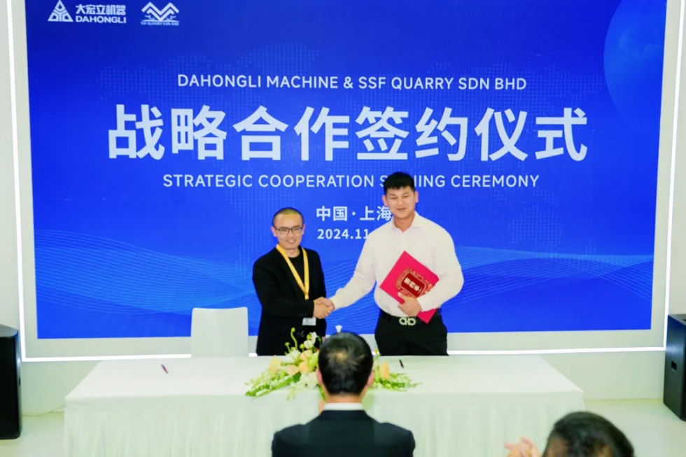 展位現場大宏立專(zhuan) 業(ye) 人員帶來的300型環保破碎站、G係列高壓輥磨機的產(chan) 品推介演講。大宏立董事長甘德宏與(yu) 馬來西亞(ya) SSF集團公司董事賴明富在展會(hui) 現場達成戰略合作,並簽署價(jia) 值3000萬(wan) 的項目合同。這一合作現場吸引了百餘(yu) 人次現場觀眾(zhong) 與(yu) 客商的關(guan) 注。